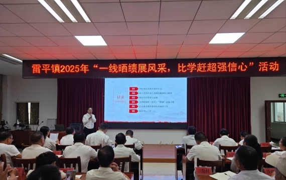 9月25日,雷平镇政府五楼会议室里气氛热烈,一场以“一线晒绩展风采,比学赶超强信心